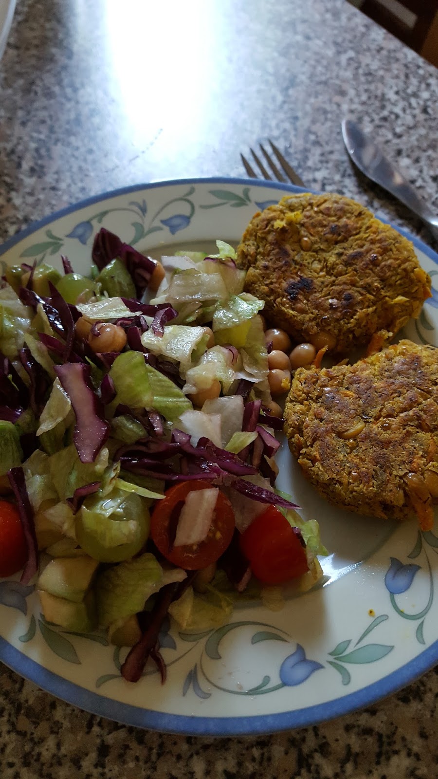 Pane kaussi oad, pressi lusikaga (või kätega) katki, lisa kikerherned, pressi katki. Lisa riivitud porgand ja maitseained, küüslaugupressiga küüslaugud, sega hästi läbi. Lisa jahu. Sega. Vormi kotletid, mitte väga paksud. Kuumal pannil rohke õliga prae mõlemalt poolt pruuniks. Serveeri rohke värske salatiga.